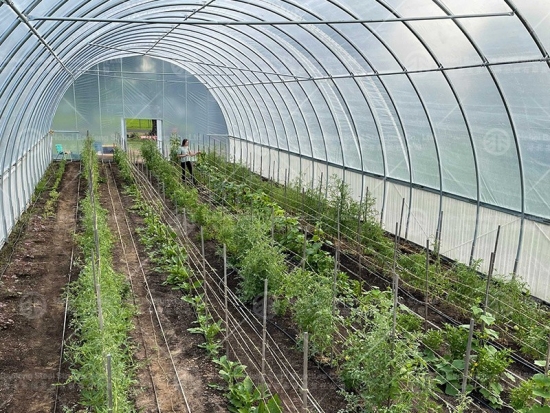 Greenhouses can be customized to suit different growing needs by incorporating features such as ventilation systems, heating and cooling systems, and irrigation systems. These features can help to regulate temperature, humidity, and air circulation inside the greenhouse, creating optimal growing conditions for plants.Single-span tunnel plastic greenhouse is galvanized steel pipe struture, covered with plastic PE film. The width is 6-10m, the length can be 10-100m. This greenhouse is equipped with manual side ventilation and sliding door.
