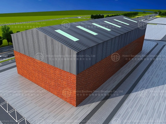 The walls and roof are made of color steel plates or color steel sandwich panels connected with roof purlins and wall beams by self-tapping nails.