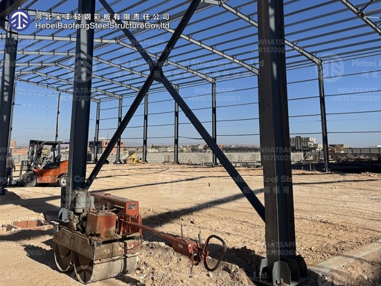 The main frame of the building—columns, beams, trusses, and other elements—is made of steel. The walls and roof are often made of lighter materials like insulated metal panels, creating an efficient and strong enclosure.