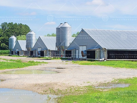 The steel structure chicken house can be equipped with modern chicken raising equipment at the same time, such as automatic feeding system, fan and egg picking system. Baofeng steel structure is a company specializing in the production and export of steel structures, which can be used as breeding houses for chickens, ducks and other birds.