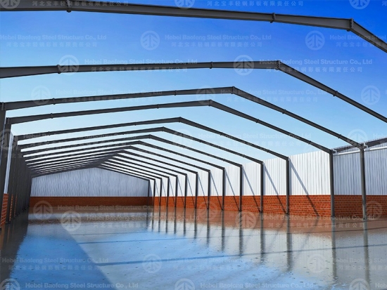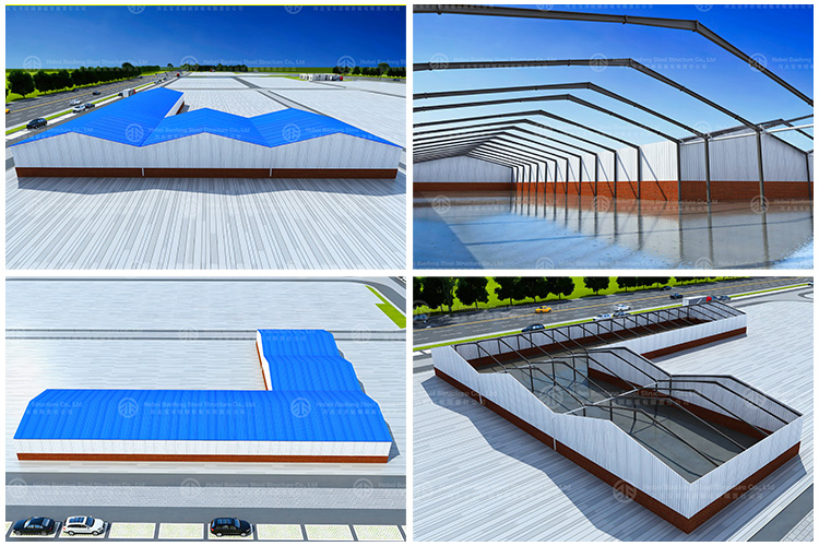 Multi Span Steel Frame Structure Warehouse Buildings / Light Metal Warehouse Construction. The portal steel frame steel structure workshop is mature in technology and widely used, which has become the fastest form of steel structure development. The portal-type steel frame steel structure workshop can be made into a large span and large space, which is convenient for flexible layout and use inside. (The steel structure workshop adopts the portal steel frame system, and its single span can even reach 80 meters. Multi-span can reach 180 meters or even longer.)