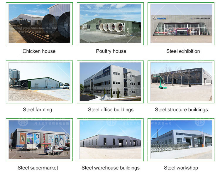 Steel structure buildings are widely used in industrial fields, such as hangars, storage warehouses, factories, workshops, commercial buildings, shopping malls, exhibition halls, supermarkets, and office buildings.