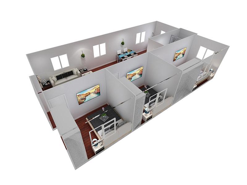 3 bedrooms, 1 living room with 1 kitchen and 1 bathroom,also can be customized |