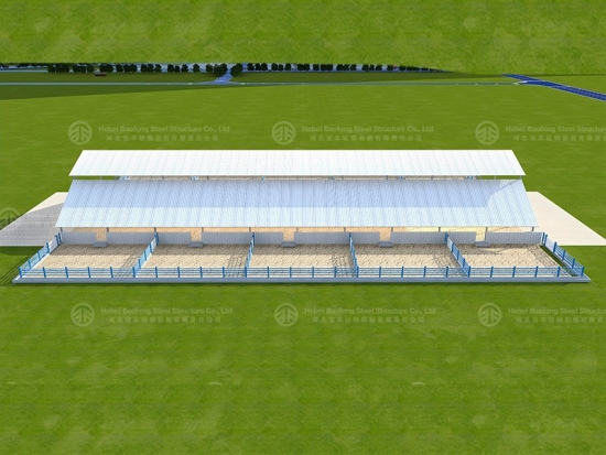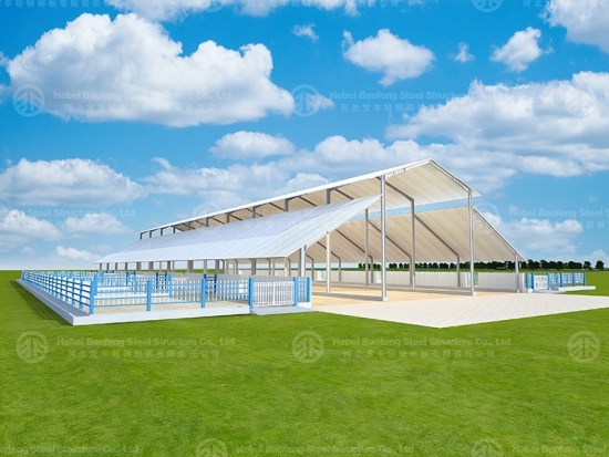 Steel cow farm are assembled by steel columns and steel beams, they are section H beam, the purlin is C-shaped steel. Since the diurnal temperature difference is large, the insulation inside must be very good in the poultry. The siding and the roof panel are composite panels, the internal filling material is 50mm thick EPS insulation board, as well as has a certain fire- retardant features.