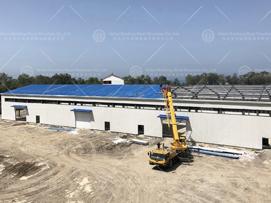 The walls and roof are made of color steel plates or color steel sandwich panels connected with roof purlins and wall beams by self-tapping nails.